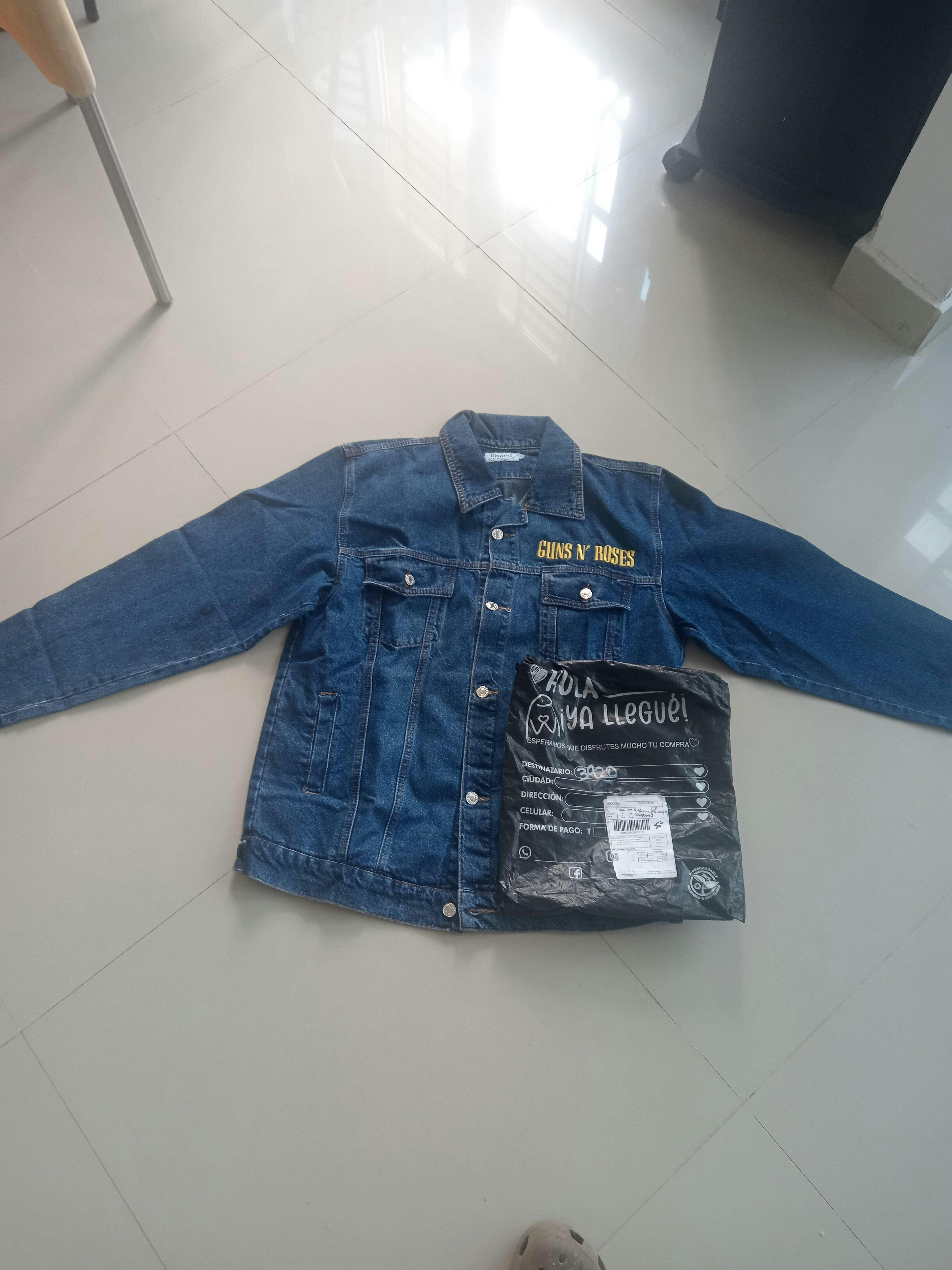 La pieza que no puede faltar en tu outfit: una chaqueta en denim clásico con el icónico logo de Guns N’ Roses, lista para acompañarte en cada concierto, salida o momento urbano.